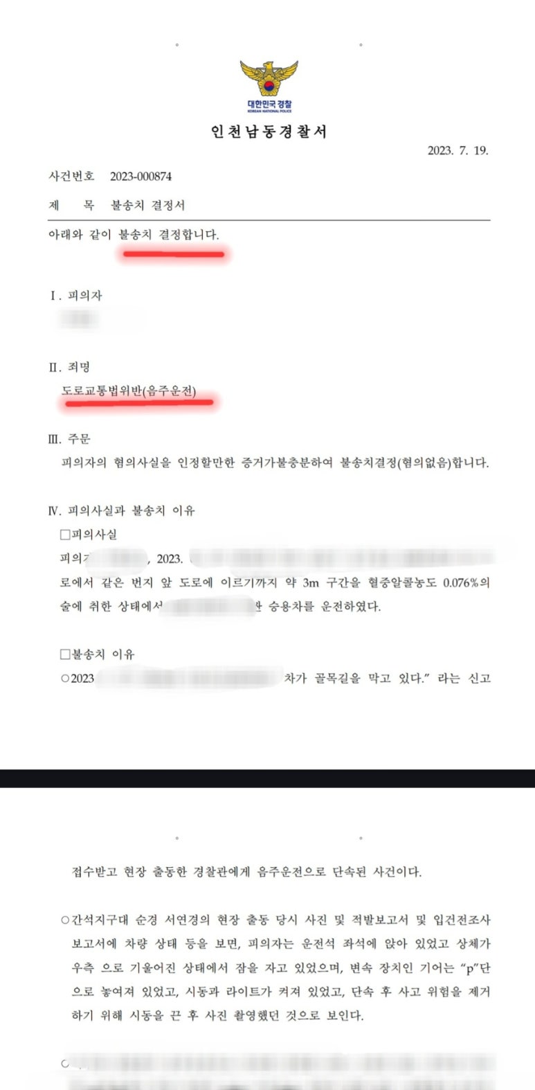 경찰은 법무법인 부유가 제출한 변호인 의견서와 차량 구조 자료, 재연 영상, 판례 자료를 종합 검토한 끝에 다음과 같은 결론을 내렸습니다.
