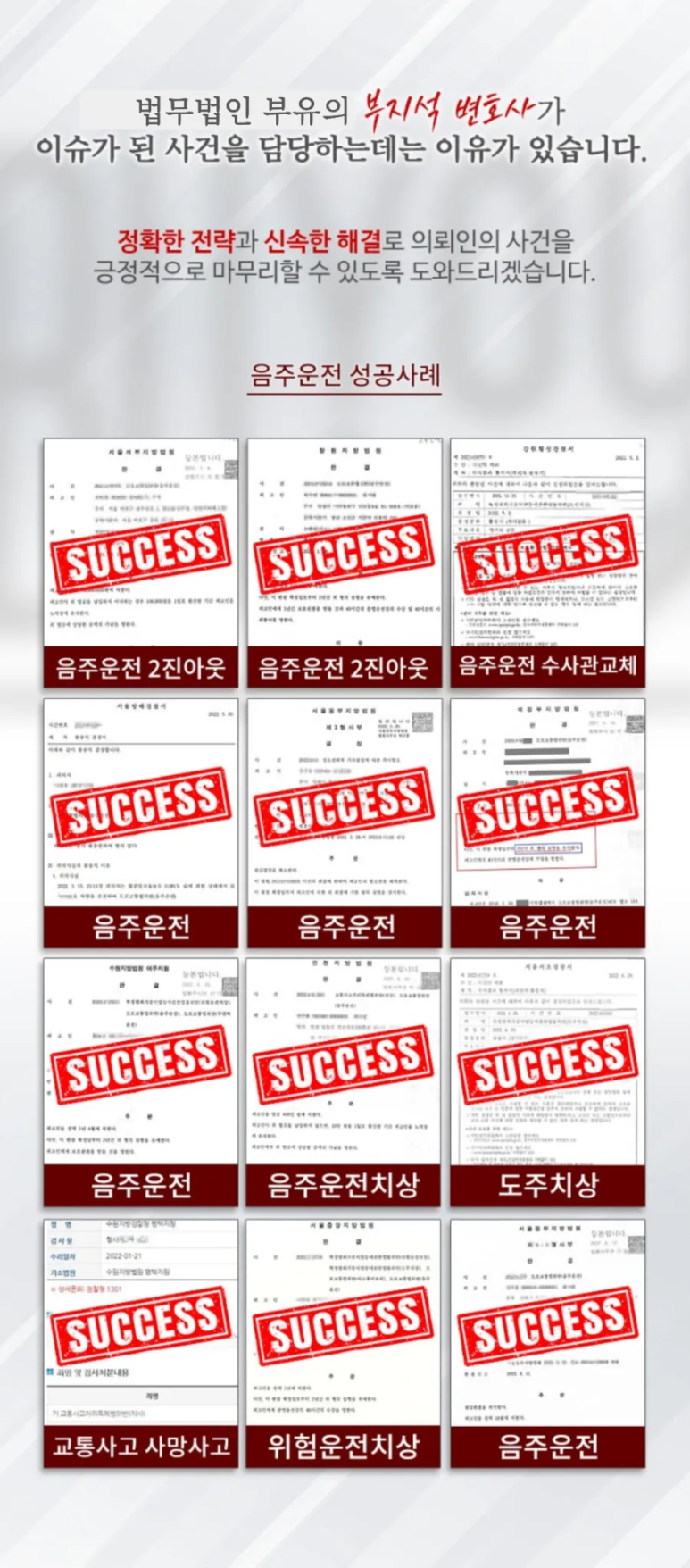 법무법인 부유는 수백 건의 형사 성공사례를 통해 실형·집행유예를 벌금형으로 바꾼 경험을 보유하고 있습니다.