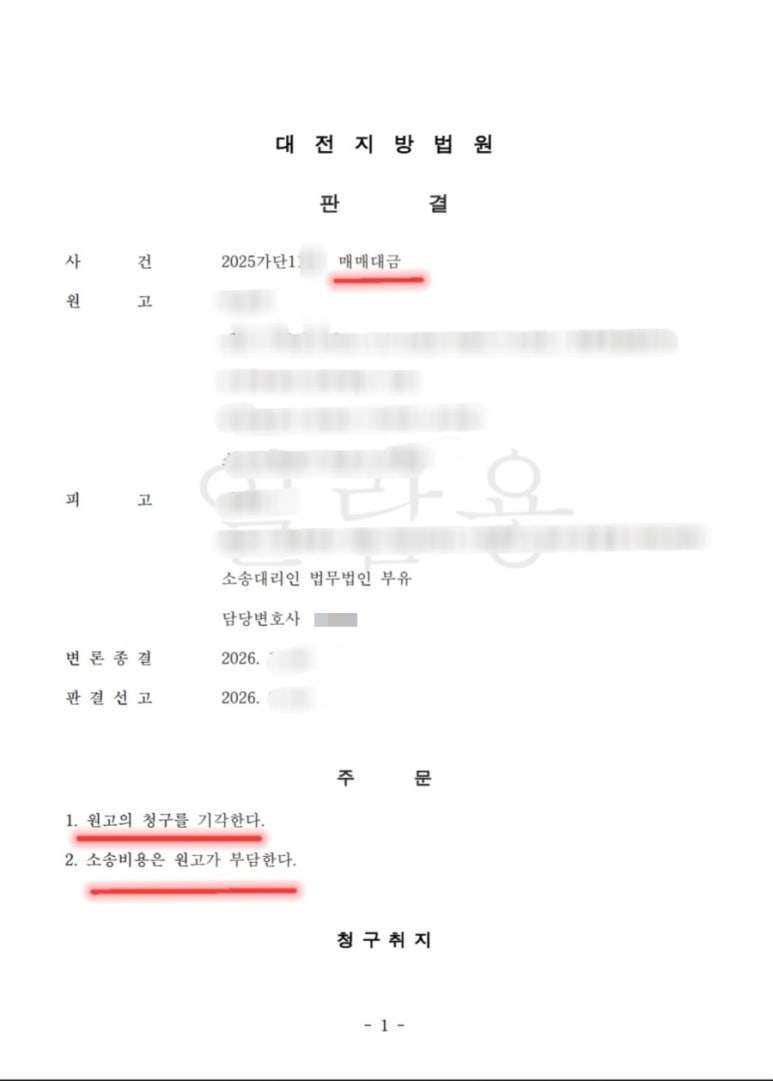 [대표변호사] 토지 지분대금 3,750만 원 청구소송, 피고 전부 승소