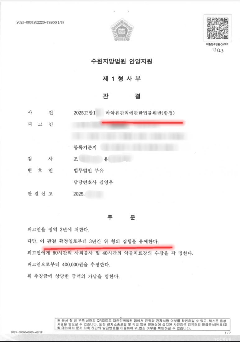 재판부 입장에서는 단순히 “개인적 일탈”에 그친 것인지, 아니면 마약 유통 구조와 접점이 있는지, 타인과의 연결성이 있는지, 재범 위험성이 높은지를 더 예민하게 살펴보기 때문입니다.