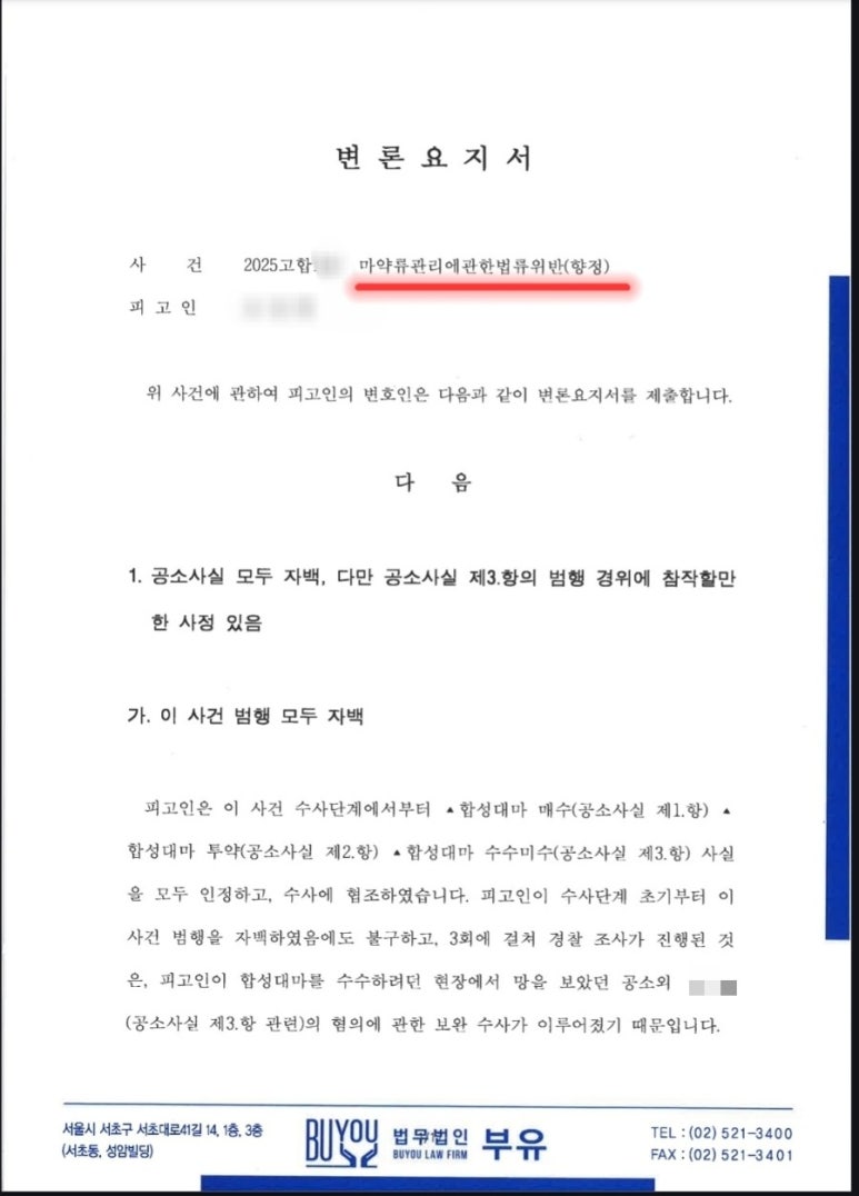 마약류관리법위반(향정) 사건에서 법무법인 부유가 이끌어낸 실질적 방어 사례