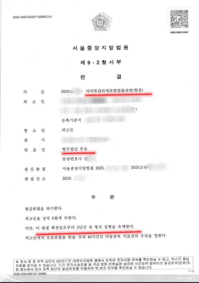 마약 사건으로 수사 또는 재판을 받고 계신 분들, 특히 1심 실형 선고 후 항소를 고민하고 계신 분들께 실질적인 도움이 되실 것입니다.