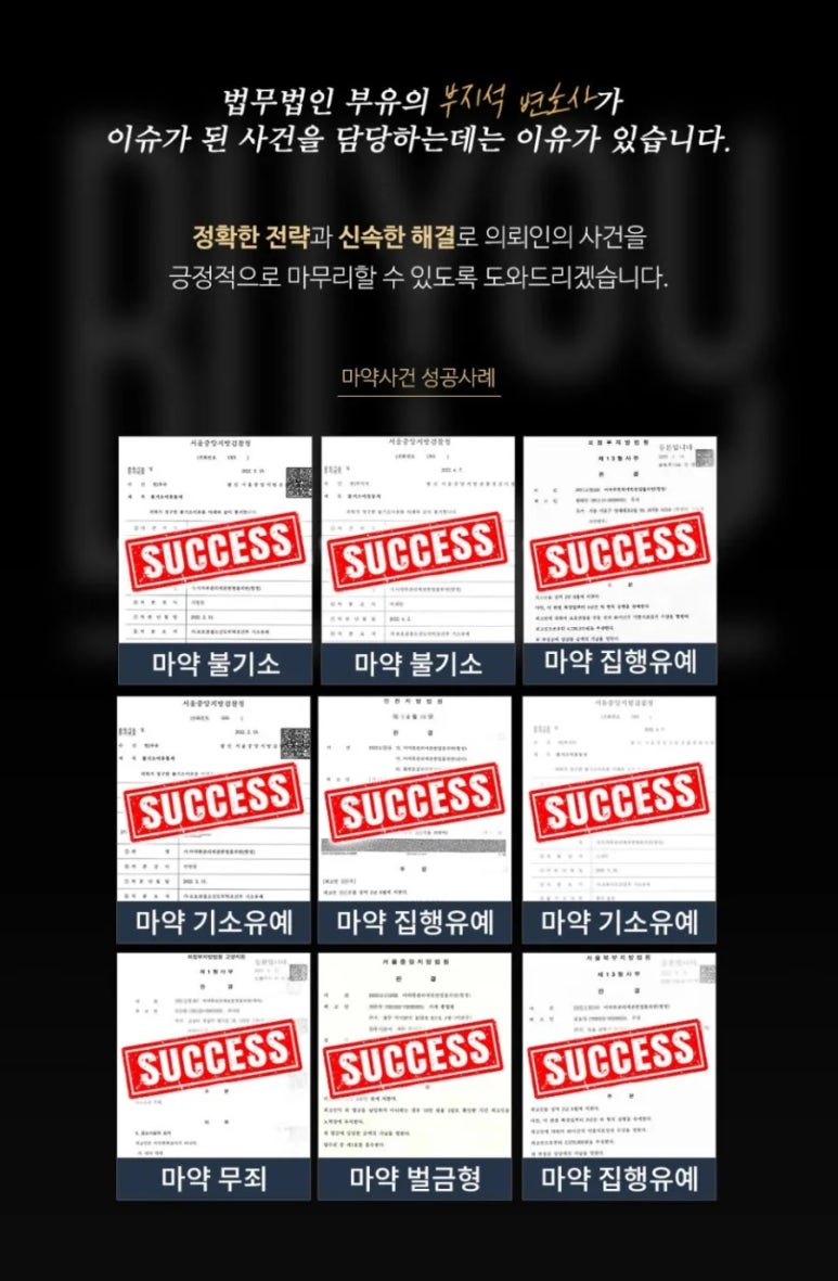 법무법인 부유는 실제 마약 사건에서 집행유예, 벌금형, 불기소·불송치 등 다양한 결과를 이끌어온 경험을 바탕으로 의뢰인 상황에 맞는 현실적인 대응 전략을 제시해 드리고 있습니다.